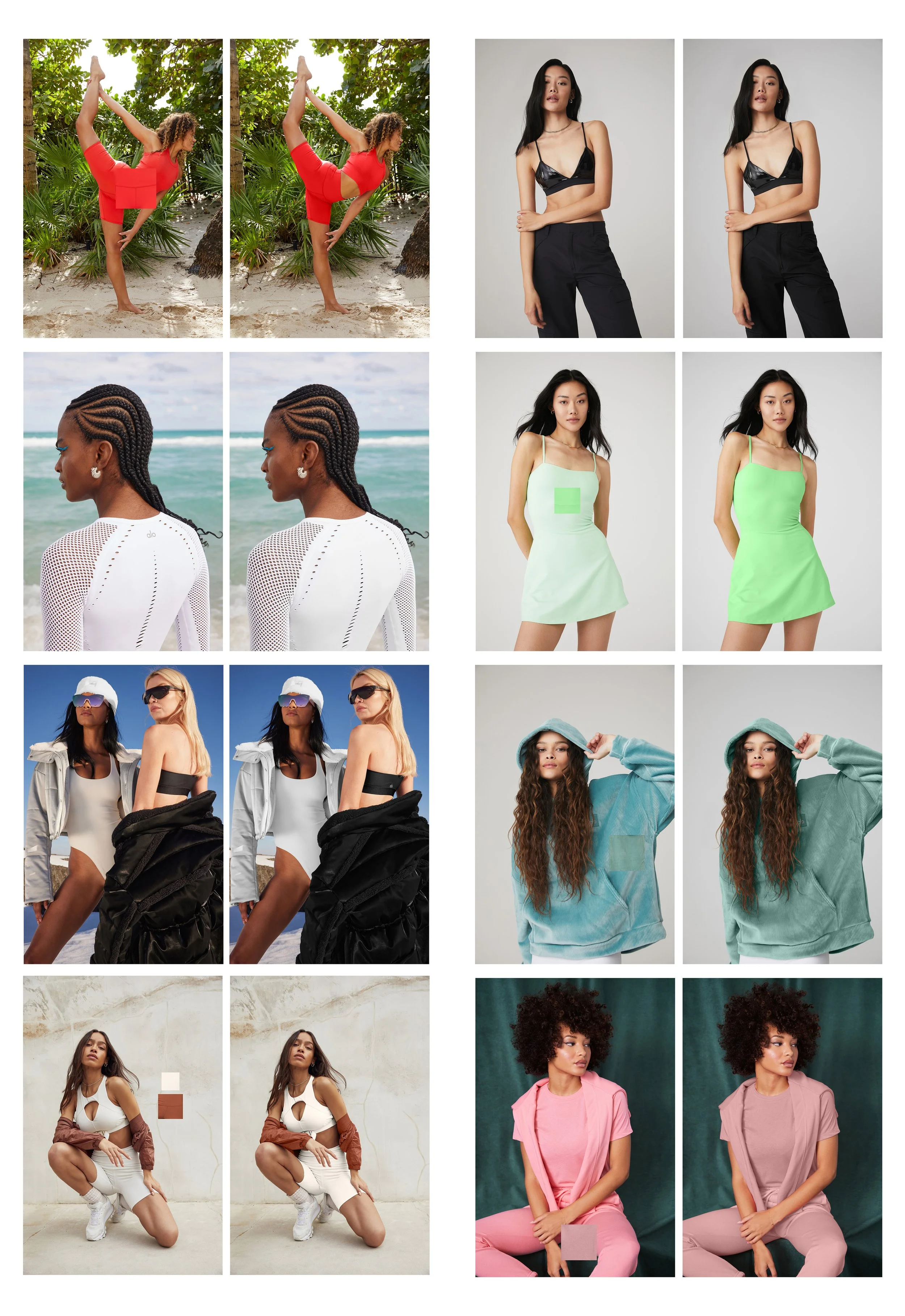Using Adobe Photoshop, I worked with a combination of work paths, layer masks, and targeted adjustment layers to fine-tune tones and hues to align with provided color swatches. I maintained non-destructive workflows to preserve image quality and maximize flexibility for revisions. This included isolating garments or skin tones using refined selections, applying Curves and Hue/Saturation adjustments, and using layer masks to blend changes seamlessly into the original image.